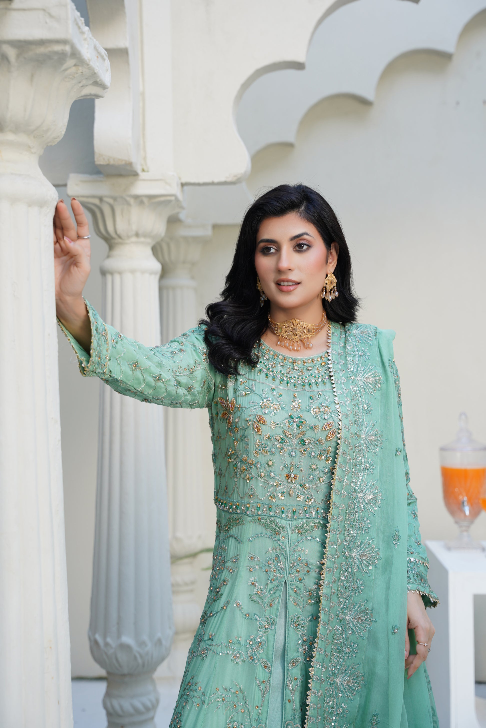 Description: Indulge in the richness of ethnic elegance with our Pastel Blue Chiffon article heavily embroidered with thread zari and sequins, The design is an ethnic masterpiece with gorgeous composition. It comes with straight trouser and an embroidered chiffon dupatta.