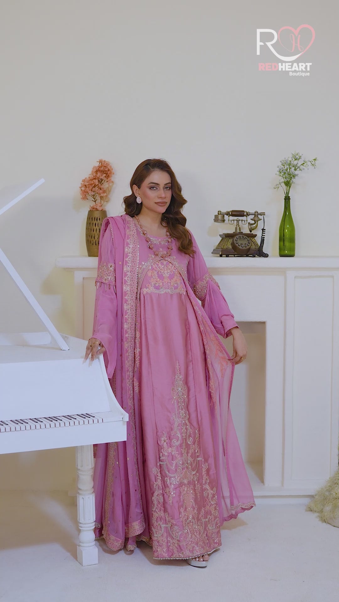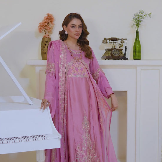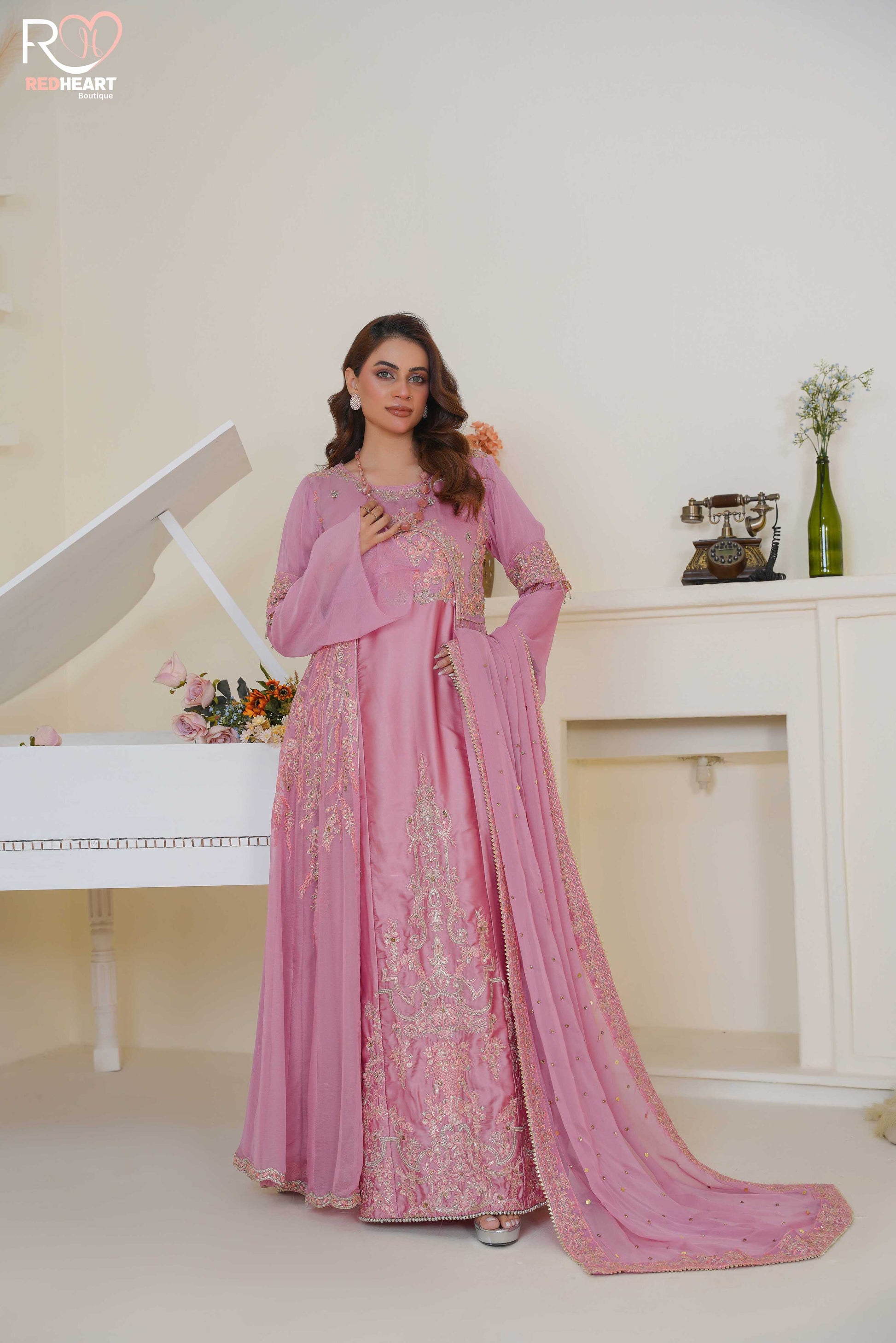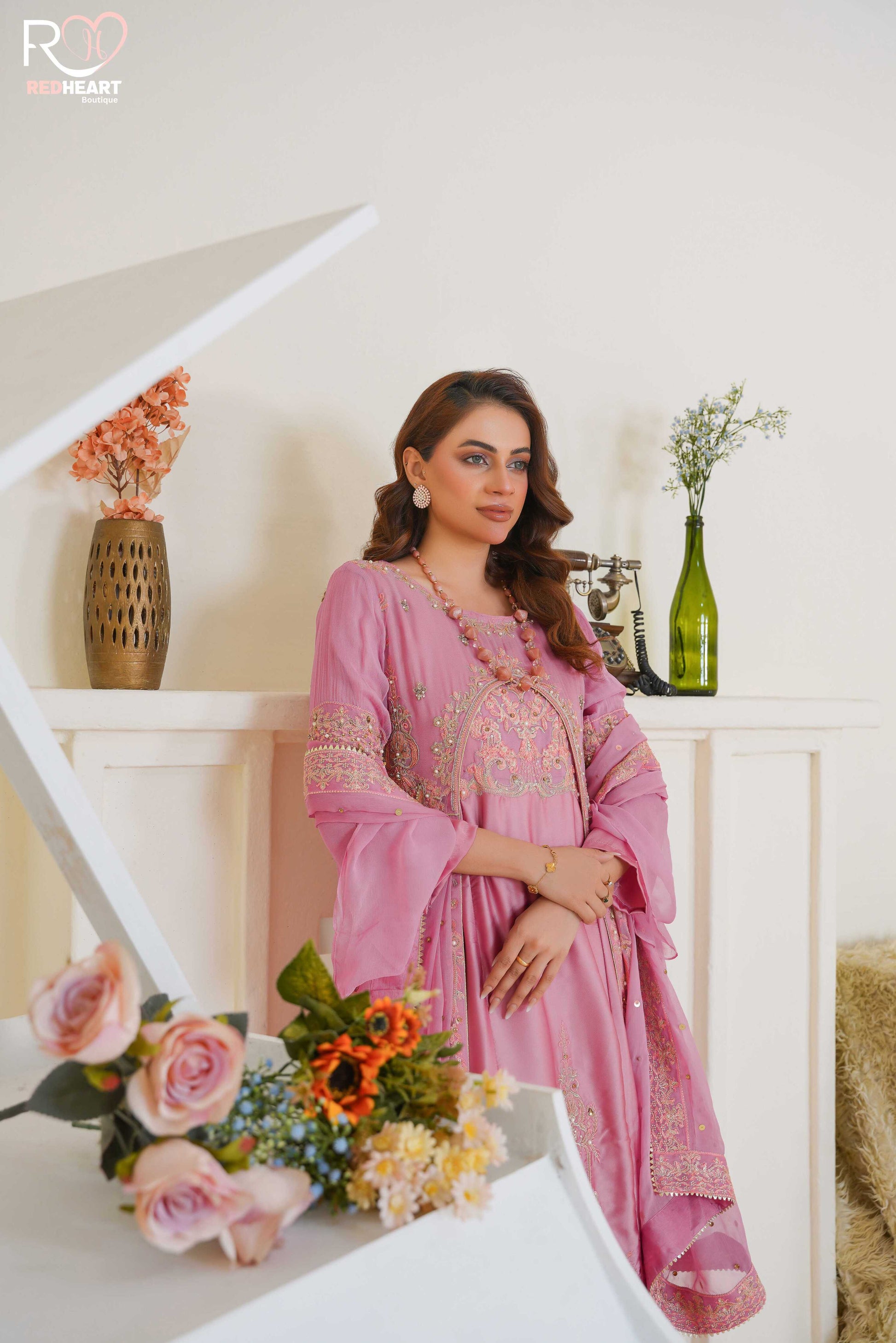 Indulge in the richness of ethnic elegance with our Turkish Rose Grip Silk article heavily embroidered with thread zari and sequins,  The design is an ethnic masterpiece with gorgeous composition. It comes with chifoon maxi,straight vicose trouser and an embroidered chiffon dupatta.