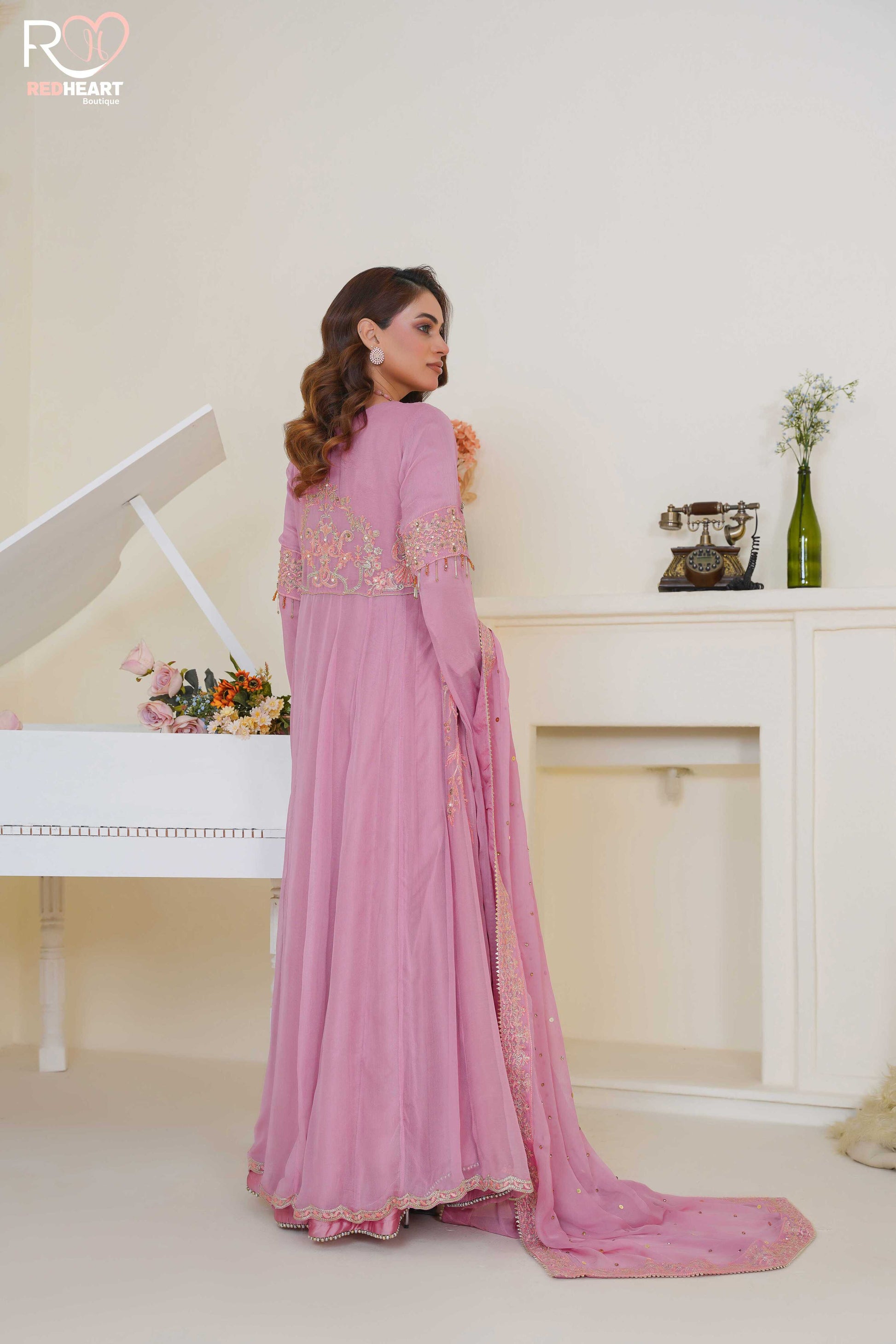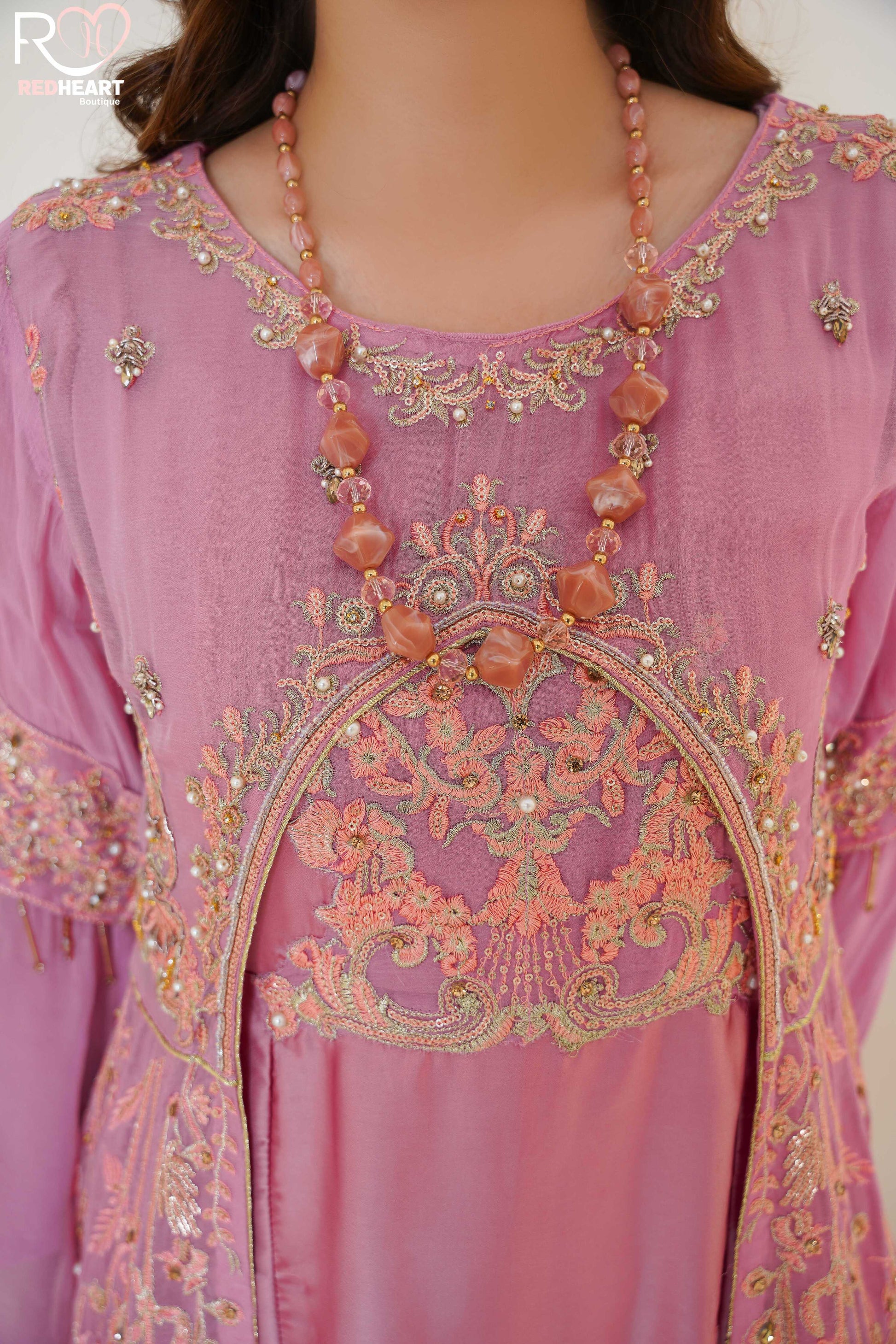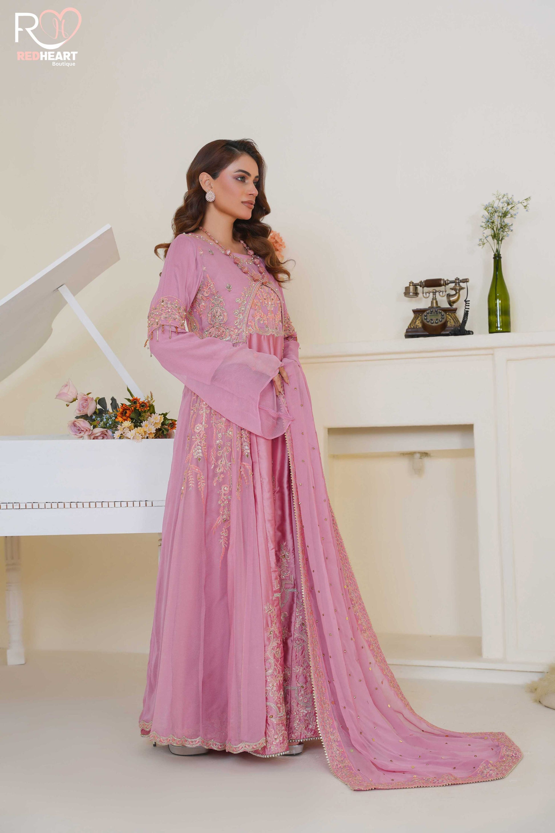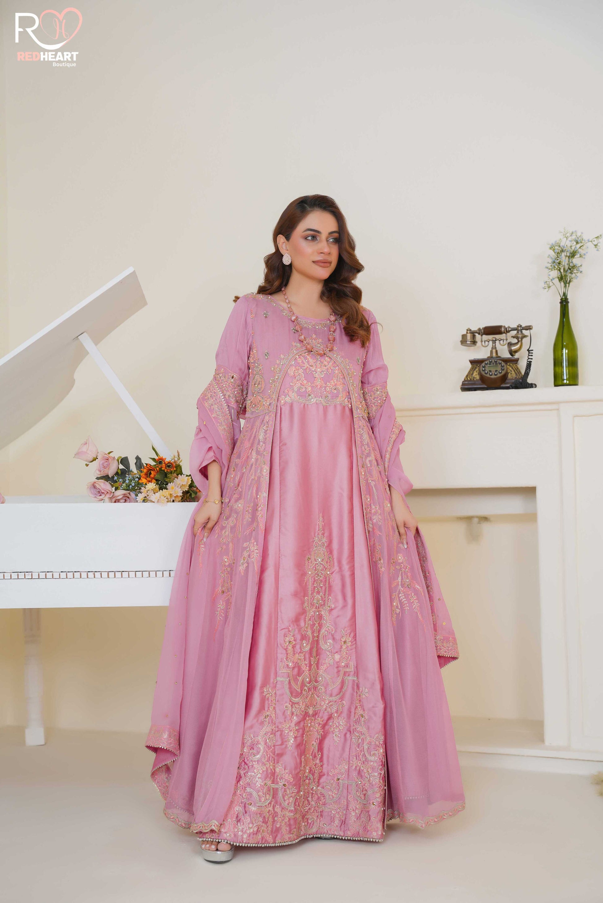 Indulge in the richness of ethnic elegance with our Turkish Rose Grip Silk article heavily embroidered with thread zari and sequins,  The design is an ethnic masterpiece with gorgeous composition. It comes with chifoon maxi,straight vicose trouser and an embroidered chiffon dupatta.
