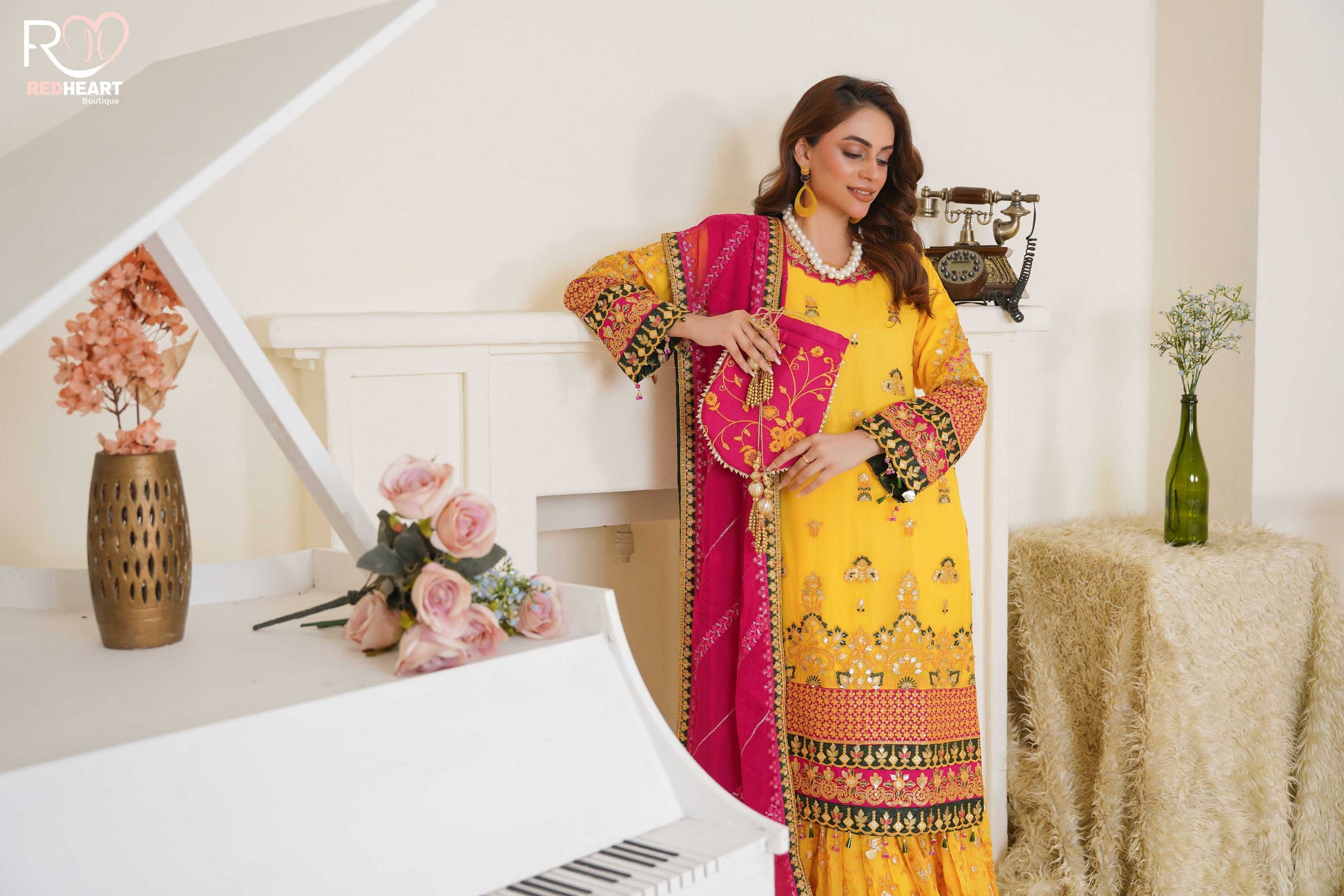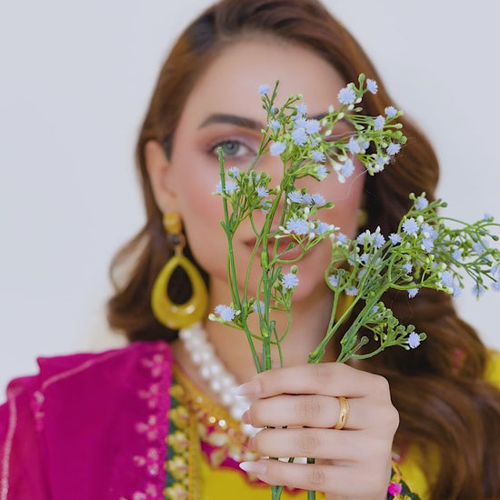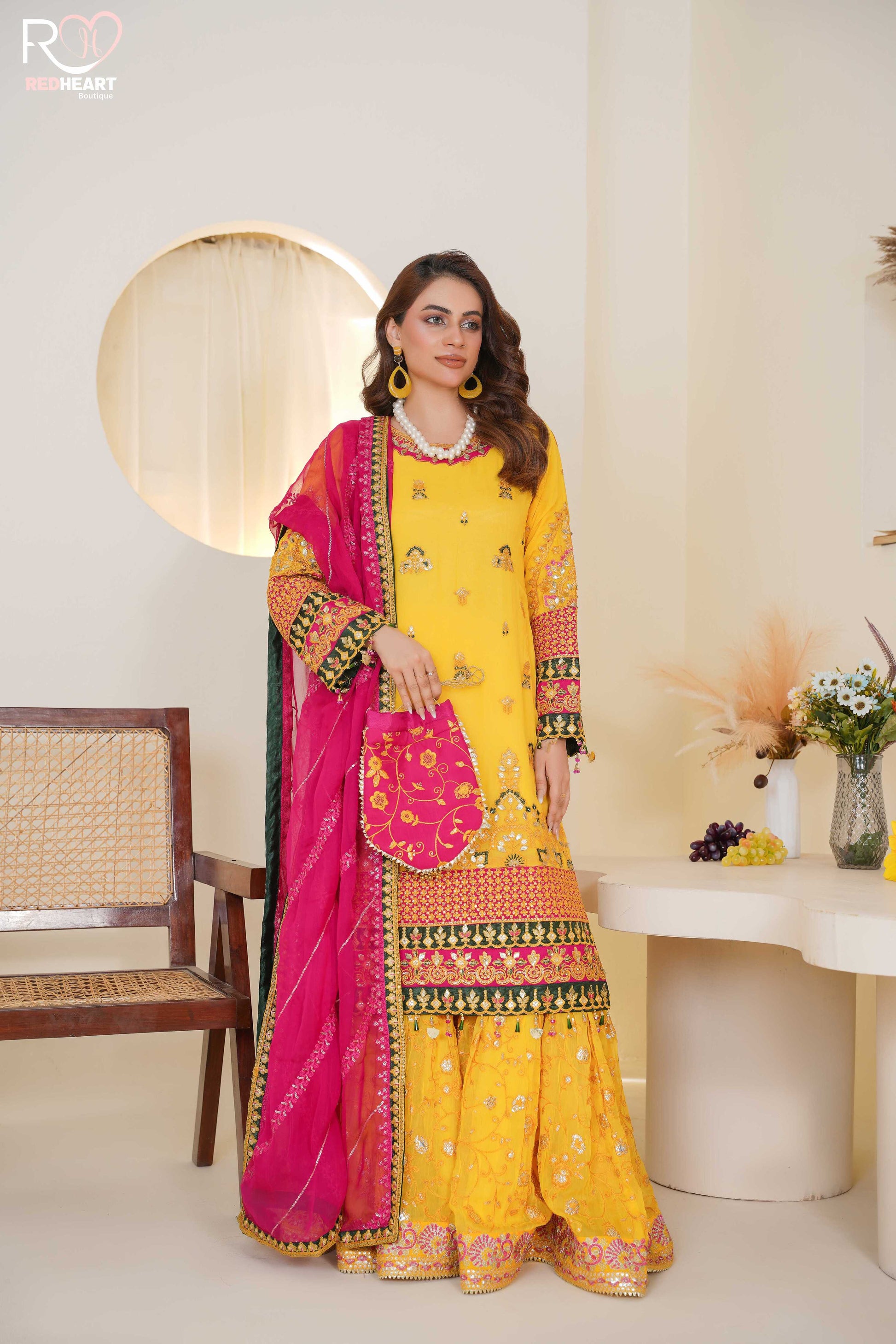 Description: Indulge in the richness of ethnic elegance with our Lighting Yellow Grip Silk article heavily embroidered with thread zari and sequins, The design is an ethnic masterpiece with gorgeous composition. It comes with beautifully designed Garara and an embroidered chiffon dupatta.